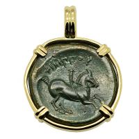 • Greek 35-12 BC, King Azes II on horseback and Athena drachm in 14k gold pendant.