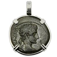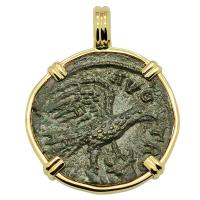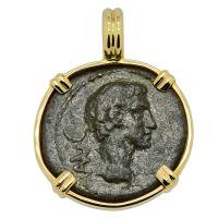 • Roman Empire 27 BC - AD 14, Emperor Caesar Augustus bronze coin in 14k gold pendant.