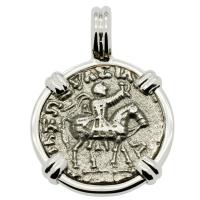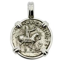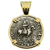 • Greek 35-12 BC, King Azes II on horseback and Zeus drachm in 14k white gold pendant.