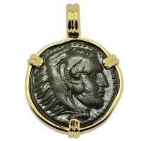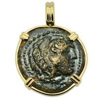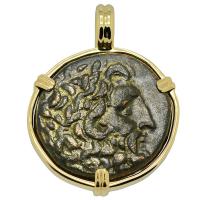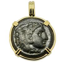 • Greek 336-323 BC, Alexander the Great bronze coin in 14k gold pendant.