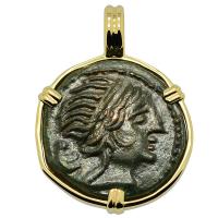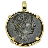 • Greek 133-80 BC, Apollo and Club bronze coin in 14k gold pendant.