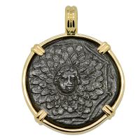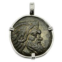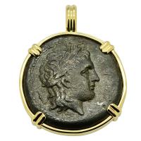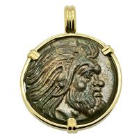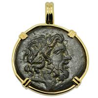• Greek 100-25 BC, Zeus bronze coin in 14k gold pendant.