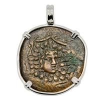 • Greek 120-63 BC, Medusa and Nike bronze coin in 14k white gold pendant.