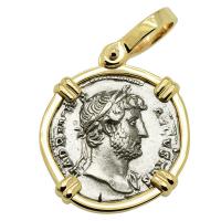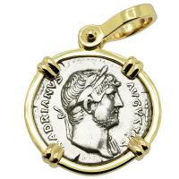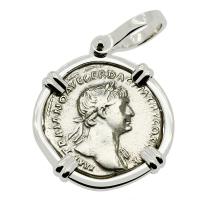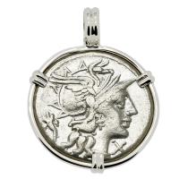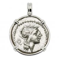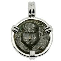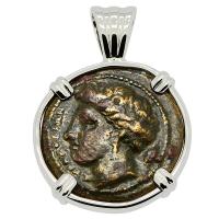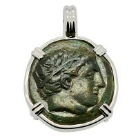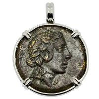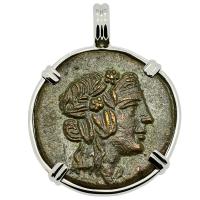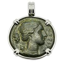 • Greek 133-48 BC, Zeus and Artemis bronze coin in 14k white gold pendant.