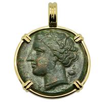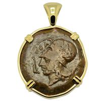 • Greek Syracuse 287-278 BC, Zeus and Eagle bronze coin in 14k gold pendant.