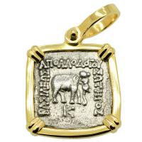 • Greek 85-65 BC, Zeus and Eagle bronze coin in 14k gold pendant.