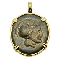 • Greek 215-175 BC, Amazon warrior and Athena bronze coin in 14k gold pendant.
