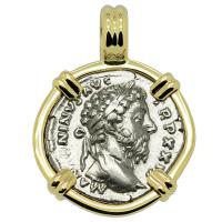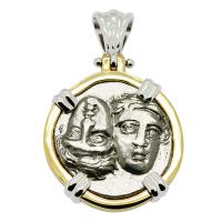 • Indo-Greek 180–160 BC, King Apollodotos I drachm in 14k white and yellow gold pendant.