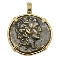 • Greek 200-27 BC, goddess Athena and eagle bronze coin in 14k gold ladies ring