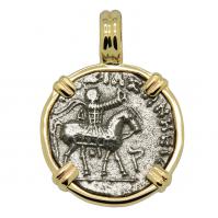 • Greek 328-323 BC Lifetime Issue, Alexander the Great drachm in 14k gold pendant.